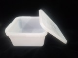 Куботейнер это прямоугольная емкость с очень прочными и толстыми (по сравнению с обычными ведрами) стенками и герметичной крышкой. Благодаря этим свойствам их можно штабелировать по высоте до 2м , что позволяет значительно экономить место при хранении и транспортировке товара. Удобные боковые ухваты (вместо стандартных ручек) надежны при погрузке. Кубоконтейнеры чаще всего используют для транспортировки меда и икры, а также творога , сметаны, солений и многого другого.